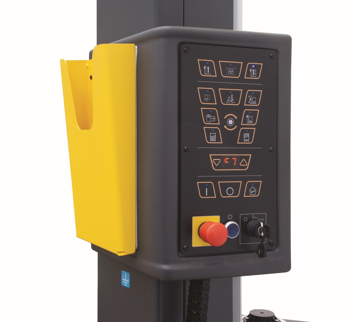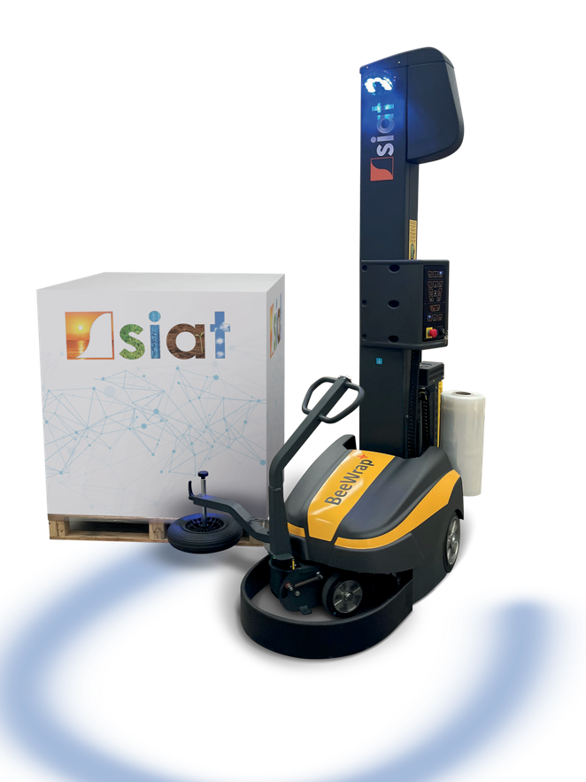 BeeWrap+ is a mobile wrapping machine used for palletizing goods with stretch film. It is suitable for heavy weight items, unusual shapes, and loads with large dimensions. It is equipped with a digital control panel that allows the user, in an easy and functional way, to alter various parameters and set-up customized wrapping cycle programs.