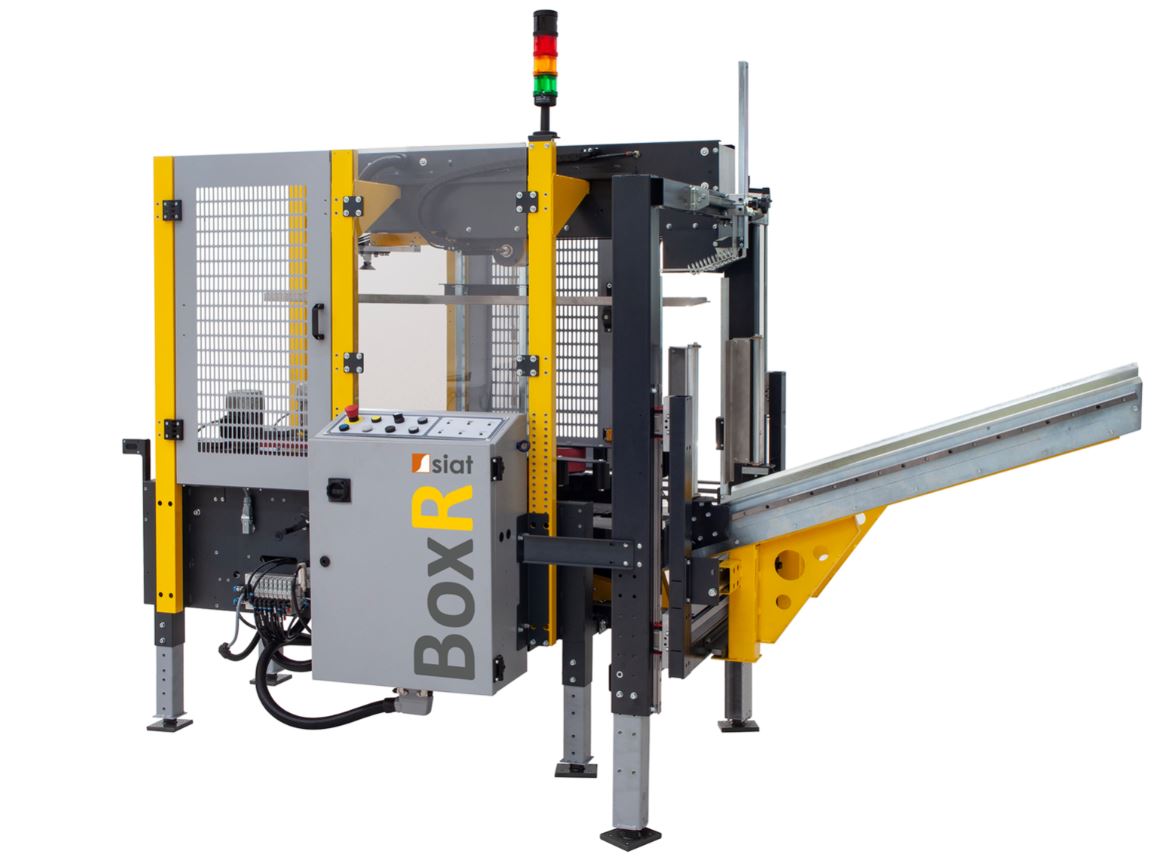 BoxR is a space-saving automatic case erector with an in-line magazine holding up to 150 boxes. Ideal for limited-space environments, it forms, folds, and seals the bottom of cartons with precision, preparing them for downstream operations.